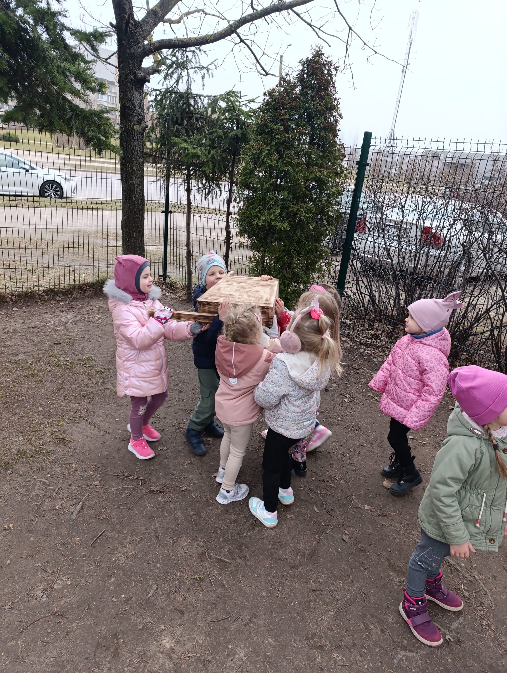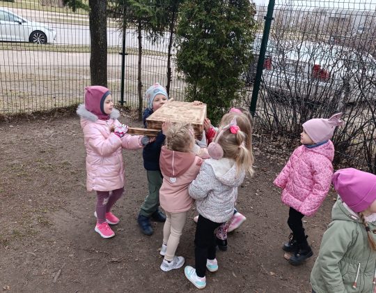 skydas nuo vėjo ir kritulių. Ugdytiniai sužinojo, kad naudojama mediena būtų natūrali, nes cheminiai