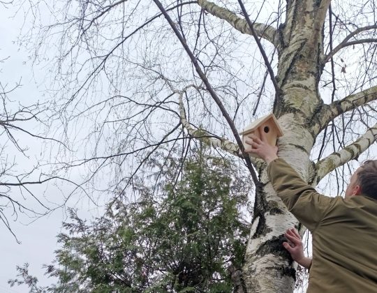 namais sparnuočiams: sukonstruoti du skirtingi inkilėliai – vienas skirtas giesmininkui varnėnui,